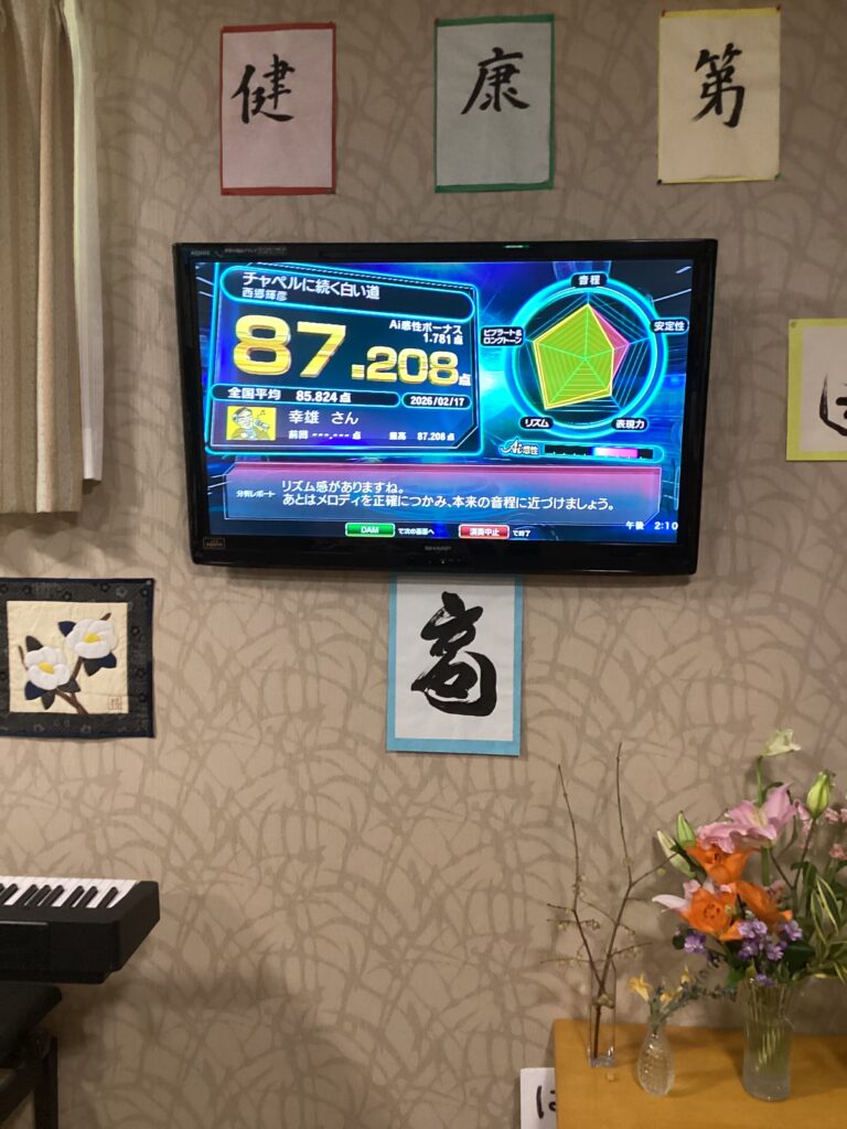 もちろん点数は強制ではないので採点をしない人もいますが、マイクも新しくなったので「新品か」「早うに使えるんか」とニコニコと笑ってカラオケに参加してくれました!