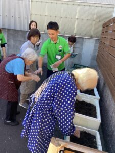 クッキング夕凪で使用できそうな野菜を中心に、ご利用者様に植えてもらいました❕