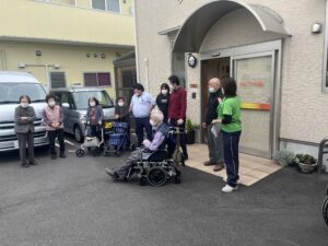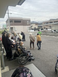 避難対象の職員および利用者さま全員が無事に屋外へ避難できました。かかった時間は3分50秒⏱実際の災害や火災では訓練のようにはスムーズに行うことは難しいと思われます。なので訓練であっても本当の災害や火災と思って実施することがとても大切ですね。