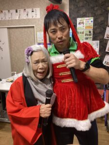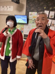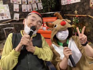 サンタのコスチュームに身を包んでデュエットしてもらい、ゲーム形式で競い合いました。