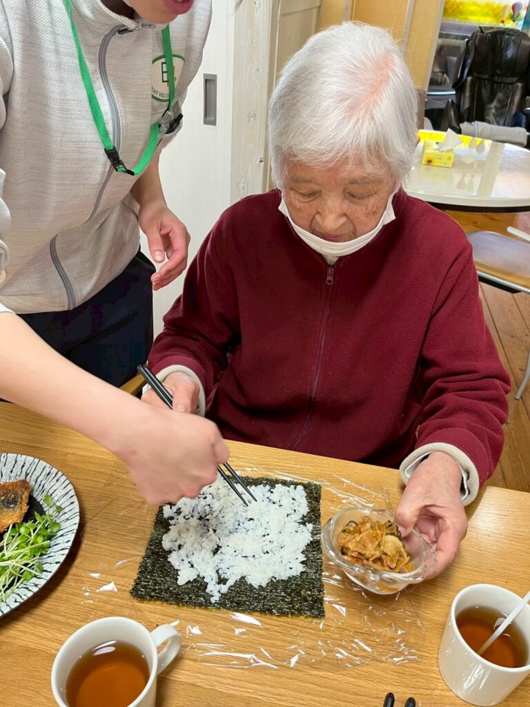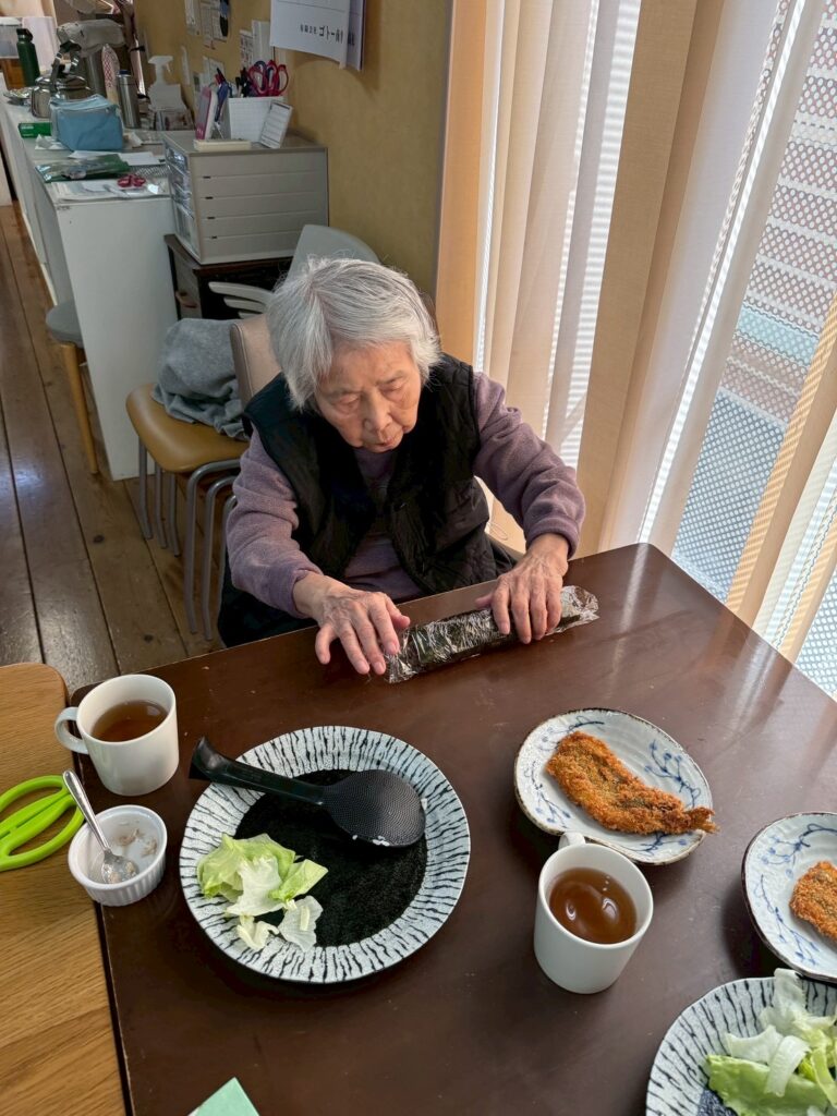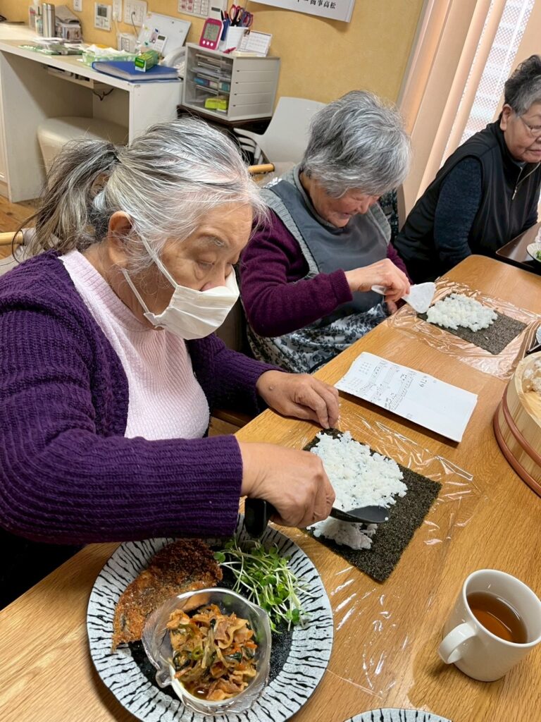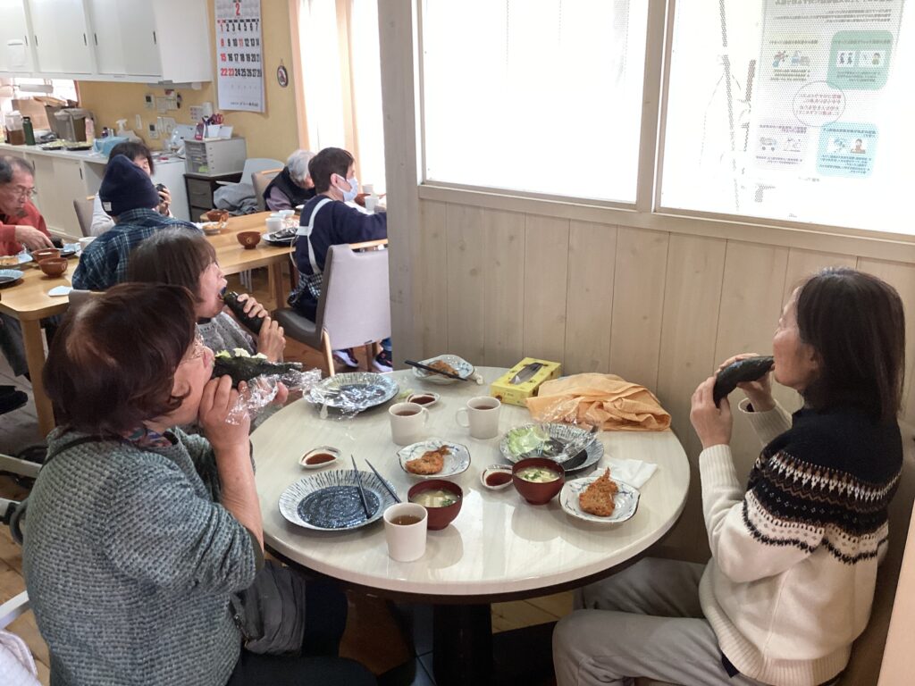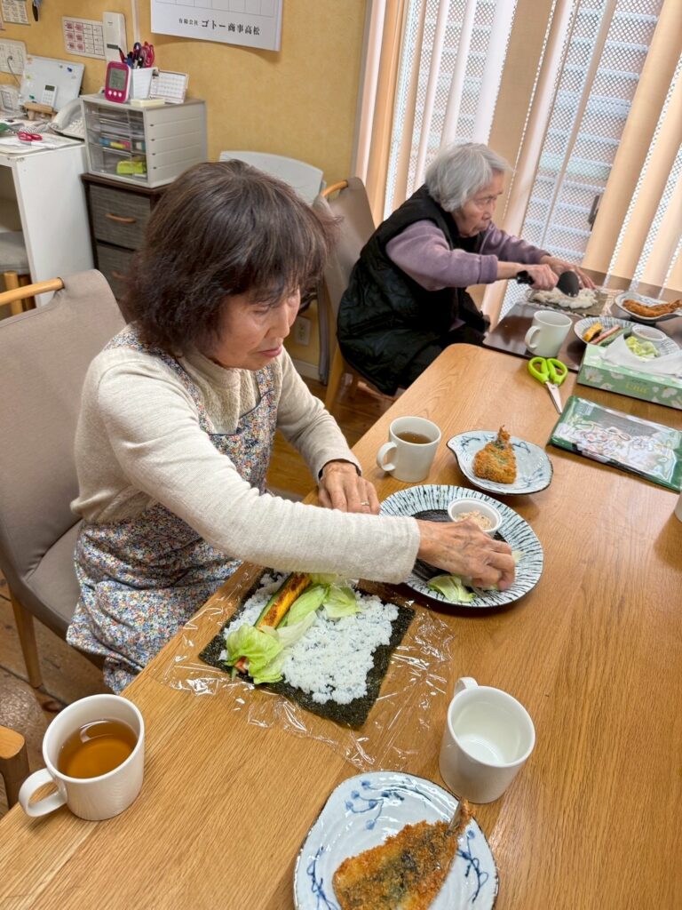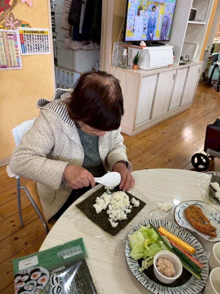一つ一つご利用者自身で巻いて、恵方巻を作ります。