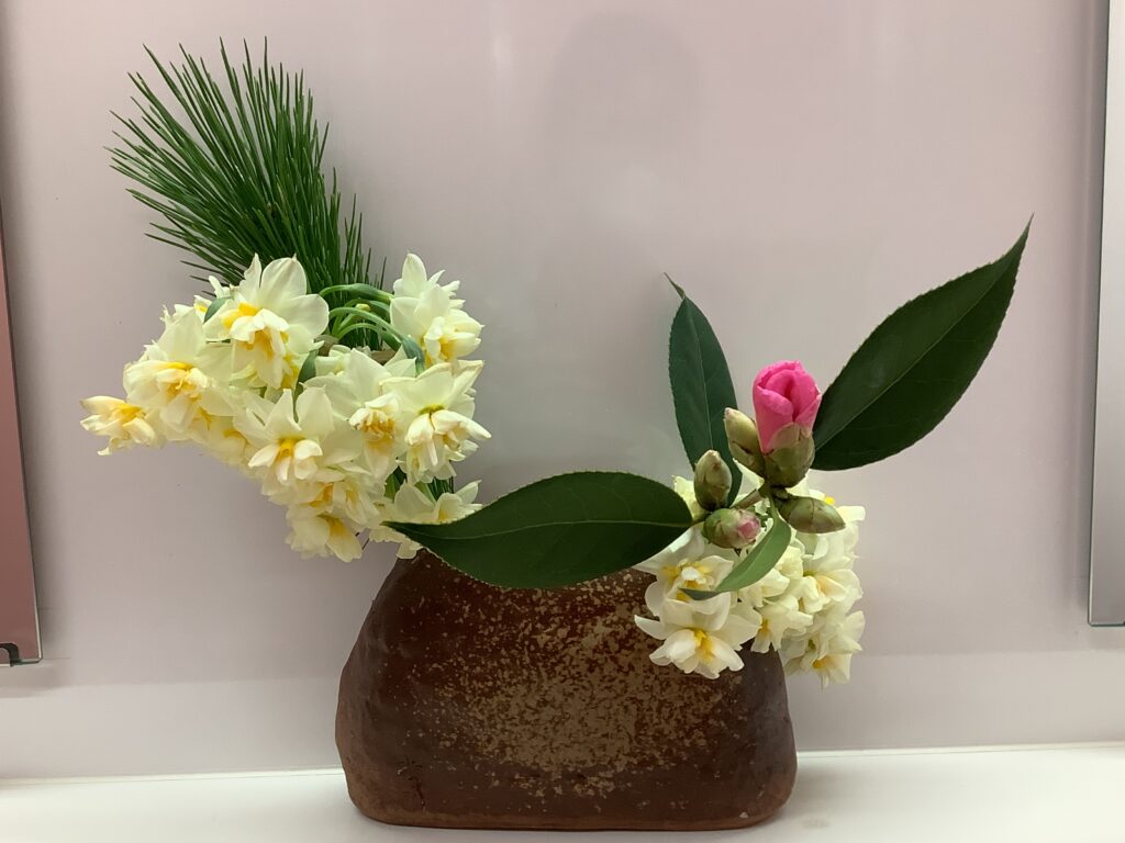 完成した水仙の飾りを飾ると、「とてもきれい」「春が近づいてきた感じがする」と笑顔でご覧になる姿が見られました。