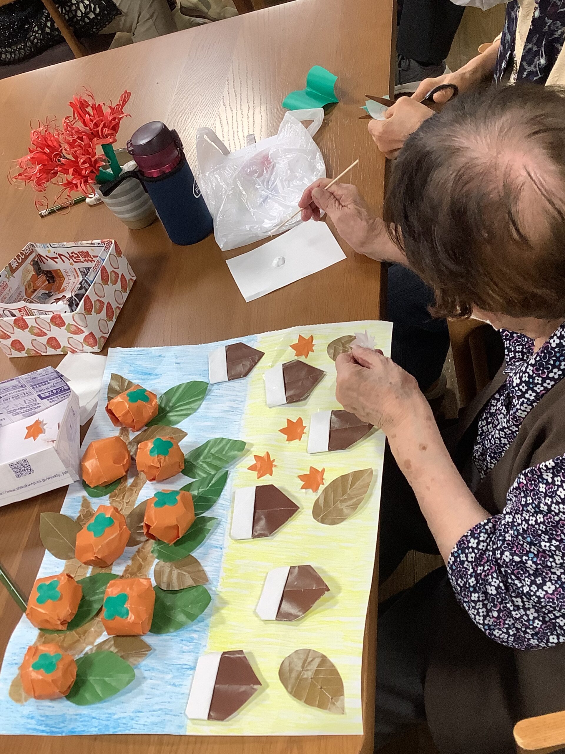 中でも、柿の実は立体的に作っていて、「本物みたい!」「昔、